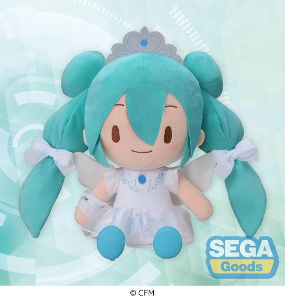 From Sega Prize comes a new Hatsune Miku Plush dressed up in a 15 year anniversary celebratory outfit complete with wings and a tiara.